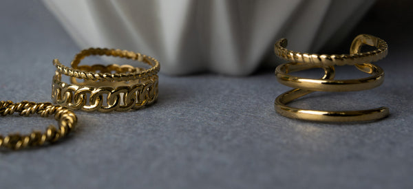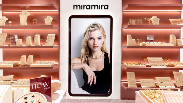 Miramira es una marca de joyería basada en piezas de acero bañadas en oro de 14 kilates.